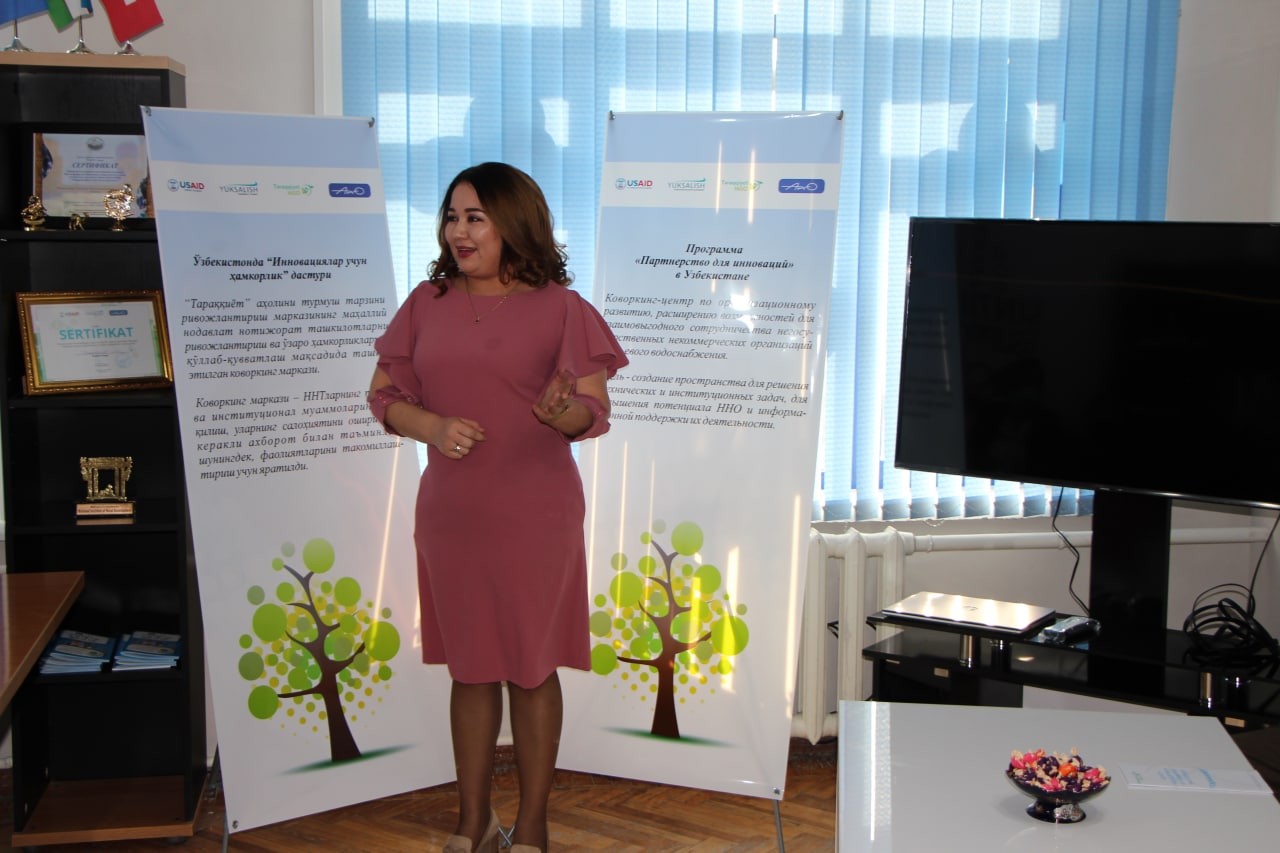 Цель и описание проекта: Повышение профессиональных знаний и навыков ННО Узбекистана по организационному развитию, а также расширение возможностей для сотрудничества ННО и государственного сектора посредством развития современных моделей ресурсных центров — Коворкинг-центров ННО.